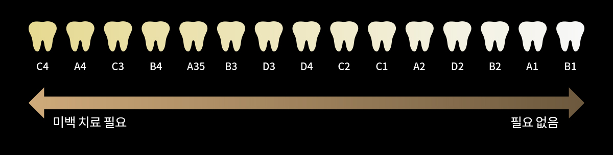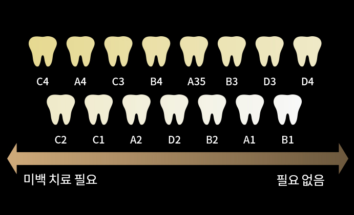 Tooth shade is classified into 16 levels from A1 to D4.